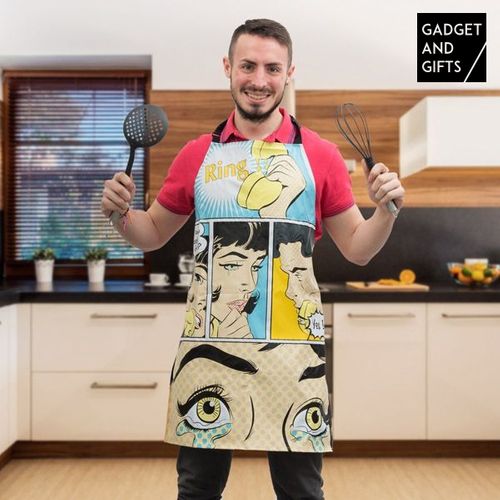 Jeżeli szukasz zabawnego i oryginalnego fartucha, to fartuch Ring! wzbudzi sensacje! Idealny, by zaskoczyć Twoją drugą połówkę. Wyposażony jest w regulowaną wstążkę na szyje, która pozwala dopasować fartuch do żądanego rozmiaru oraz zewnętrzną warstwę z PVC, aby ułatwić czyszczenie. Przybliżone wymiary: 57 x 78 cm. Przybliżona długość wstążek do wiązania: 47 cm każda.