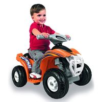 Fantastyczny Quad Flash na akumulator 6V firmy Feber dla wymagających. Wyprodukowany na podstawie najnowszych technologii oraz najwyższych norm bezpieczeństwa. Pojazd może poruszać się z prędkością do 2 km/h z niezwykłą stabilnością, zapewniając przy tym bezpieczeństwo Twojego dziecka. Gaz i hamulec znajduje się w jednym pedale. Quad jest idealny dla dzieci w wieku od 12 miesiąca i nadaje się do użytku w domu jak i na zewnątrz.