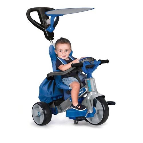 Niebieski Trójkołowy rowerek Baby Twist 4w1 dla wymagających wyposażony został w dodatkową platformę z kółeczkami, dzięki którym rowerek staje się niezwykle zwinny i daje możliwość obracania go w miejscu o 360 stopni. Rowerek przeznaczony jest dla dzieci już od 10 miesiąca życia a wraz z wiekiem dziecka istnieje możliwość dostosowania go do jego wzrostu. Wyprodukowana na podstawie najnowszych technologii oraz najwyższych norm bezpieczeństwa. Komfortowy rowerek trójkołowy od hiszpańskiego producenta zabawek firmy Feber.