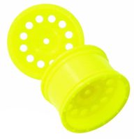 Felgi w kolorze żółtym do modeli off-road Monster Truck. Wykonane z lekkiego, elastycznego i odpornego na uderzenia nylonu, przez co są one bardzo wytrzymałe i przystosowane do użytku w ciężkich warunkach w modelach typu off-road. Poprzez wzmocnioną budowę dostosowano felgę tak, aby nadawała się do użytku w modelach typu Monster Truck. W zestawie 2 szt. Felgi przeznaczone do użytku z modelami w skali 1:16 marek HSP, AMAX oraz Himoto.