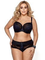 Zgrabne, wyższe figi od Gorsenii. W pięknym, czarno-granatowym kolorze, z efektem zmysłowego prześwitu po bokach. Elegancko i kusząco podkreślają biodra, pozwalając na pełną wygodę. Koronka zjawiskowo miękka, wysokiej jakości. Skład: 90% poliamid, 7% elastan, 3% poliester.
