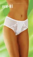 Klasyczny, nieco wyższy fason bielizny w połączeniu z szykowną stylistyką. Eco-Mi to wygodne figi w modnym w tym sezonie, "paseczkowym" deseniu. Haftowane kwiaty, podobnie jak paski, gustownie zwracają tu na siebie uwagę. Przód gładki i dzięki temu nieprześwitujący.