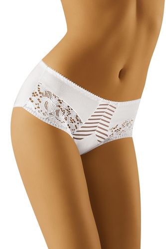 Bawełniane figi o wyższym kroju. Zdobione koronką wokół ud. Tył gładki, kryjący. Model pełen klasy i elegancji. Skład: 90% bawełna, 7% elasatn, 3% poliamid.