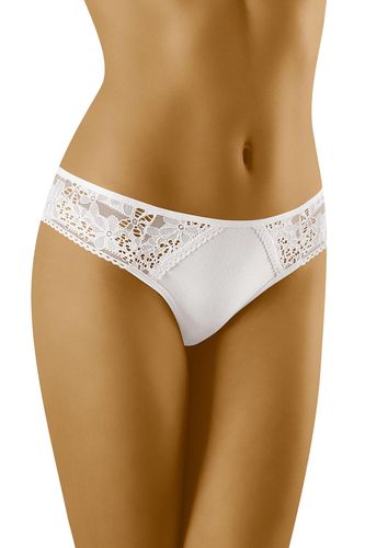 Wygodne figi z pięknym, kwiecistym zdobieniem wokół bioder. Skład: 90% bawełna, 7% elastan, 3% poliamid.