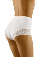 Klasyczne figi o ponadczasowym kroju. Wykonane z wysokiej jakości bawełny, pozwalają skórze oddychać, świetnie dopasowują się do kształtu ciała. Nieco pełniejszy fason doskonale tuszuje niedoskonałości figury oraz modeluje pośladki. Gładkie, ozdobione po bokach prześwitującą koronką. Bardzo kobiece, niezastąpione w każdej kobiecej szafie!