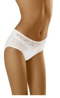 Bardzo komfortowe, bawełniane figi zdobione w przedniej części elegancką kompozycją z koronki i stylowej, prążkowanej dzianiny. Krój wyższy. Skład: 90% bawełna, 7% elastan, 3% poliamid.