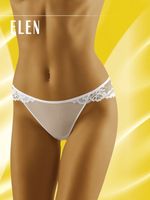 Seksowne figi, które szczególnie pięknie ozdobią biodra. Gładkie z przodu, koronkowe i zarazem kwieciste z tyłu i po bokach. Fason optycznie wydłuża nogi. Skład: 83% poliamid, 17% elastan.