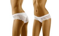 Gustowne figi z koronkowym wykończeniem. Koronka - wykwintnie kwiecista - stylowo zdobi zarówno boki bielizny, jak i sporą część pośladków. Wygodny i zarazem zmysłowy model fig. Skład: 83% poliamid, 17% elastan.