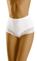Bielizna do zadań specjalnych, w wersji na co dzień. Oto delikatnie korygujące figi, o nieco wyższym fasonie, ze śliczną koronkową lamówką wokół ud. Lamówka optycznie wydłuża nogi. Skład: 59% poliamid, 41% elastan.