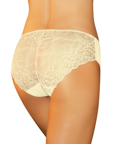 Zjawiskowe figi, które łączą wygodę z ponadprzeciętnym wdziękiem. Gładki, spokojny przód i koronkowy tył ze zmysłowym efektem prześwitu. Oto bielizna dla Ciebie. Skład: 95% bawełna, 5% elastan