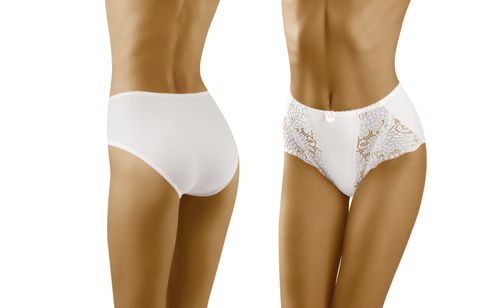 Wygodne, nieco pełniejsze figi o pięknych, zmysłowych motywach efektownie wyeksponowanych na delikatnej koronce. Orientalne inspiracje prowokująco piętrzą się tu po obu boczkach nadając całości ponętnego wdzięku. Gładka i elastyczna tkaninka troszczy się tutaj o Twoją wygodę, podczas gdy urocza kokardka z satynki kokieteryjnie wieńczy górę fig.