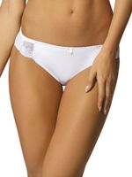 Kobiece i elastyczne figi z koronkowym akcentem po bokach. Fason ładnie podkreśla ciało. W przedniej części dostrzeżesz maleńką, satynową kokardę. Oto bielizna, na którą warto zwrócić uwagę.