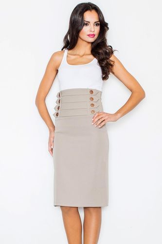 Stylowa spódnica podkreślająca walory kobiecej figury. Paseczki z guziczkami znajdujące się wzdłuż talii delikatnie ją wysmuklają. Elegancka i szykowna propozycja na każdy dzień tygodnia. Z tyłu posiada wszyty zamek. Skład: 95% poliester, 5% elastan TABELA ROZMIAROacute W: Figl 36 S M L XL Talia 35 37 39 41 Biodra 47 49 51 53 Szerokość na końcu 47 49 51 53 Długość 69 70 71 72