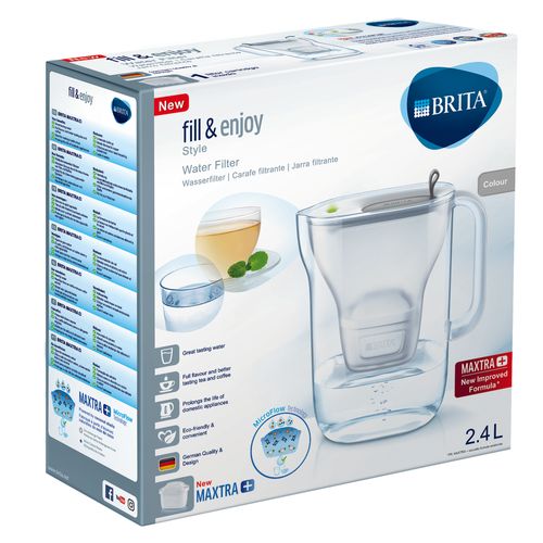 Najnowszy filtr dzbankowy BRITA z filtrem Powerfilter MAXTRA+. Minimalistyczne i nowoczesne wzornictwo. Wygodę użytkowania dzbanka BRITA Style zapewniają następujące elementy: pokrywka z uchylną, silikonową klapką wlewu wody, dzięki której można napełnić dzbanek bez konieczności zdejmowania pokrywki, silikonowy uchwyt, Smart Light - wskaźnik wymiany wkładu LED, który przypomina o konieczności wymiany wkładu filtrującego co 4 tygodnie oraz półprzeźroczysty lejek umożliwiający kontrolowanie tempa procesu filtracji. Dzbanek i lejek filtra można bezpiecznie myć w zmywarkach automatycznych. Dzbanek Style pasuje na półkę drzwi lodówki. Filtr dzbankowy sprzedawany jest w zestawie z jednym nowym wkładem wymiennym MAXTRA+.