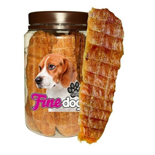 FineSnack Filet Kurczak to zdrowy i naturalny przysmak dla psa, który zaspokaja naturalną potrzebę żucia, wzmacniając tym samym mięśnie żuchwy i zapewniając wielką przyjemność z jedzenia. Filety z kurczaka odznaczają się elastyczną konsystencją i aromatycznym smakiem delikatnego mięsa drobiowego. Przysmak nie zawiera cukru, soi, pszenicy, które często wywołują alergie i nietolerancje pokarmowe, przez co idealnie nadaje się nawet dla najbardziej wrażliwych smakoszy. Przysmaki zostały spakowane w bezpieczne, szczelne opakowanie z możliwością wielokrotnego zamykania, dzięki czemu zachowują swoją świeżość na długi czas. Każdego dnia możesz podawać swojemu psu lekkostrawny i aromatyczny przysmak do żucia. FineSnack Filet Kurczak to doskonały sposób na zmotywowanie Twojego psa podczas wspólnych spacerów i zabaw lub po prostu zdrowy przysmak między posiłkami. Najwyższej jakości mięso drobiowe stanowi idealne urozmaicenie i wzbogacenie codziennego menu Twojego psa. Opakowanie zawiera 350g. produktu. Skład surowcowy: mięso i produkty pochodzenia zwierzęcego (mięso z piersi kurczaka), produkty pochodzenia roślinnego, minerały. Analiza: białko 28%, tłuszcz 1%, popiół 4%, włókno 1%, wilgotność 17% Nie należy podawać psom poniżej 4 miesiąca życia. Przechowywać w suchym i chłodnym miejscu szczelnie zamknięte. Pamiętaj - tylko oryginalny FineSnack jest gwarancją najwyższej jakości.