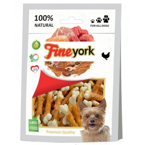 Przysmaki dla psów Fineyork Calcium Bone to zdrowe i naturalne mięso z piersi kurczaka owinięte wokół smakowitej kości wapniowej. Smakołyki dla psów Calcium Bone gwarantują Twojemu pupilowi intensywną radość z żucia, wspomagając jednocześnie codzienną pielęgnację uzębienia i redukując osad nazębny, co przy regularnym stosowaniu poprawi stan uzębienia Twojego psa. Intensywne żucie smakołyków dla psów Fineyork Calcium Bone wzmacnia mięśnie żuchwy psa i wspomaga krążenie w dziąsłach, a bogactwo wapnia zapewnia mu mocne zęby i zdrowy zgryz. Przysmaki dla psów Fineyork są w 100% naturalne, nie zawierają chemicznych konserwantów i wzmacniaczy smaku, co sprawia, że stanowią idealne uzupełnienie codziennej diety Twojego ulubieńca. Przysmaki dla psów Fineyork są dopasowane rozmiarem do psów małych, średnich i dużych ras, a zastosowanie tylko naturalnych, zdrowych składników sprawia, że są odpowiednie nawet dla najbardziej wrażliwych psich smakoszy.