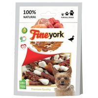 Fineyork Duck Calcium Bone to zdrowe przysmaki dla psów w postaci wapiennych kości owiniętych aromatycznym mięsem z kaczki. Smakołyk stanowi doskonałe źródło wapnia, niezbędnego dla mocnych i wytrzymałych kości i zębów. Naturalne mięso z kaczki, pochodzące z najlepszych hodowli, to bogate źródło białka, fosforu, żelaza, potasu oraz witamin z grupy B. Przysmaki dla psów Fineyork Duck Calcium Bone są lekkostrawne i łatwo przyswajalne, co sprawia, że stanowią idealną przekąska dla psa pomiędzy posiłkami lub doskonały sposób na zmotywowanie pupila podczas wspólnych treningów i zabaw. Intensywne żucie przysmaku Fineyork zaspokaja naturalną potrzebę gryzienia u psa, wzmacnia mięśnie żuchwy, dostarczając mu jednocześnie ogromnej satysfakcji z jedzenia i pozytywnie wpływając na stan jego uzębienia. Smakołyki dla psów Duck Calcium Bone nie zawierają konserwantów, sztucznych barwników i wzmacniaczy smaku, które mogą być przyczyną alergii pokarmowych co czyni je doskonałą przekąską również dla wrażliwych psich smakoszy. Przysmaki dla psów Fineyork to nie tylko wielka radość z jedzenia dla Twojego psa, ale przede wszystkim doskonały sposób na uzupełnienie codziennej diety pupila w niezbędne składniki odżywcze, minerały i witaminy.
