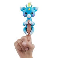 Niebieska Żyrafa Lil’g będzie przyjacielem twojego dziecka! Lil’g zawieszona na palcu do góry nogami zamknie oczy i zapadnie w głęboki, relaksujący sen. Natomiast pobujana przez dziecko będzie wydawać z siebie zaskakujące odgłosy. Żyrafa potrafi również odwzajemnić uczucia i przesyła słodkie, przyjacielskie pocałunki. Przypadnie do gustu zarówno młodym jak i starszym miłośnikom zwierząt. Po umieszczeniu Lil’g na palcu zaskocz ona dziecko wieloma zabawnymi interakcjami. Żyrafa potrafi śpiewać zabawne piosenki, uroczo mrugać oczkami. Lil’g to świetny sposób na spędzenie wolnego czasu w towarzystwie rodzeństwa lub szkolnych przyjaciół.