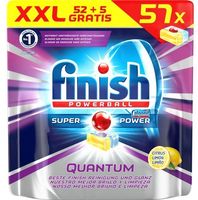 Finish Quantum tabletki 60szt. Lemon tabletki do zmywarki o zapachu cytrynowym zapewniają silne płukanie w cyklu płukania. Jedna tabletka zapewnia wszystko w 1 to środek czyszczący i nabłyszczający ze zintegrowaną funkcją soli w jednym.