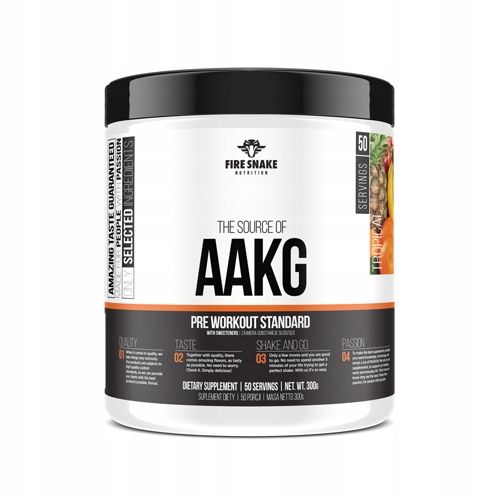 Suplement diety / Środek spożywczy zastępujący całodzienną dietę, do kontroli masy ciała. Nie stosować w przypadku uczulenia na którykolwiek ze składników produktu. Nie należy przekraczać zalecanego dziennego spożycia. Nie może być stosowany jako zamiennik bądź substytut zróżnicowanej diety. Zalecany jest zrównoważony sposób żywienia i zdrowy tryb życia. Produktu nie należy podawać matkom karmiącym oraz kobietom w ciąży. Przechowywać w suchym miejscu, w temperaturze pokojowej do 25°C. Chronić przed światłem. Przechowywać w miejscu niedostępnym dla małych dzieci. FireSnake AAKG - 300g Zawiera substancje słodzące. Porcja: 6 g Ilość porcji w opakowaniu: 50 Opakowanie: 300g Wartość Odżywcza / Informacja Żywieniowa: Na 6 g % RWS* AAKG (alfa-ketoglutaran argininy) 5000 mg - Składniki: alfa-ketoglutaran argininy, maltodekstryna, regulator kwasowości - kwas cytrynowy, aromaty, substancje słodzące (sukraloza, acesulfam K, cyklaminian sodu, sacharynian sodu), barwnik - betanina, substancja przeciwzbrylająca: dwutlenek krzemu. *% Referencyjna Wartość Spożycia