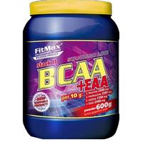 FitMax® BCAA +EAA to 7500 mg aminokwasów zaliczanych do aminokwasów egzogennych, bądź względnie egzogennych, w porcji. Aminokwasami egzogennymi (EAA) określa się aminokwasy, których to organizm ludzki nie jest w stanie sam syntetyzować, a tym samym muszą one zostać dostarczone wraz z pożywieniem. Zapotrzebowanie na obie grupy związków rośnie drastycznie wraz z wysiłkiem fizycznym. Ich dostarczenie umożliwia budowę struktur, przemiany energetyczne oraz zachodzenie wielu innych procesów w organizmie włączając w to m.in. przewodnictwo nerwowe oraz detoksykację. Dodatek witaminy B6, usprawnia przyswajanie składników produktu.