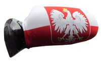 Flagi na lusterka samochodowe - "Biało-Czerwoni" z godłem narodowym. W komplecie 2 sztuki - prawa i lewa.