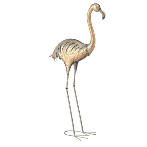Dekoracyjna figurka ogrodowa przedstawiająca flaminga wykonana z metalu w odcieniu miedzi z pewnością zachwyci niejedną osobę. Flaming idealnie komponuje się w ogrodzie, na tarasie, werandzie, czy balkonie. Będzie świetną dekoracją na wysepce oczka wodnego, czy też przy skalniaku. Figurka jest odporna na warunki atmosferyczne. W ofercie posiadamy jeszcze flaminga patrzącego w tył.