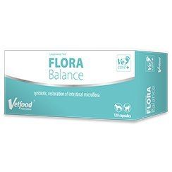 FLORA Balance to synbiotyk (połączenie probiotyku z prebiotykiem), którego aktywne składniki wspierają prawidłową pracę przewodu pokarmowego i wpływają na odbudowę mikroflory jelitowej u zwierząt.
