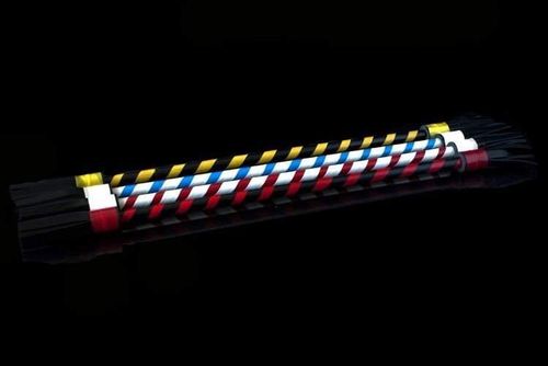 Rdzeń drewniany pokryty kolorową taśmą, frędzle gumowe.