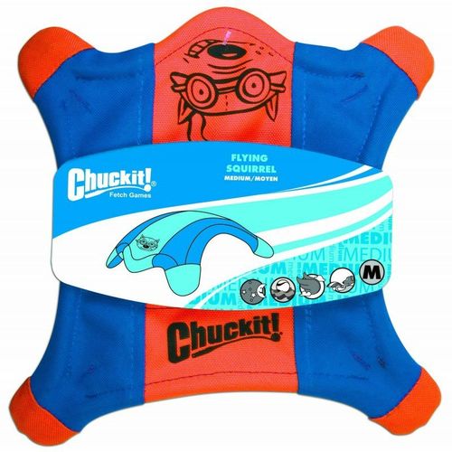 Latające wiewiórki Chuckit! zapewnią długie godziny zabawy w aportowanie! Po prostu złap wiewiórkę za łapę i rzuć niczym frisbee. Aerodynamiczny profil zabawki pozwala na dalekie wyrzuty. Wiewiórka jest wykonana z wytrzymałego płótna. Podniesione boczne krawędzie ułatwiają psu podniesienie zabawki z podłoża. Łapy wiewiórki świecą w ciemności. Zabawka unosi się na wodzie.