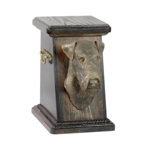 Wspaniałej renomy ręcznie zrobiony produkt umiejscowiony w kategorii Urny nawiązujący do psa rasy Terier