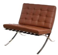 Jest to zaprojektowany w 1929 roku fotel, który powstał na zamówienie, i stanął w niemieckim pawilonie na wystawie w Barcelonie. Charakterystycznie powyginana w kształt litery "X" chromowana podstawa oraz pikowana w kwadraty skóra naturalna to najbardziej charakterystyczne cechy tego fotela. Uzupełnieniem tego fotela jest Barcelona Ottoman i Barcelona stolik. Fotel wykonany całkowicie ze skóry naturalnej. Prezentowany produkt jest inspirowany projektem fotela Barcelona. WYMIARY W [CM] Wysokość: 74 Szerokość: 75 Głębokość: 50 Wysokość siedziska: 44
