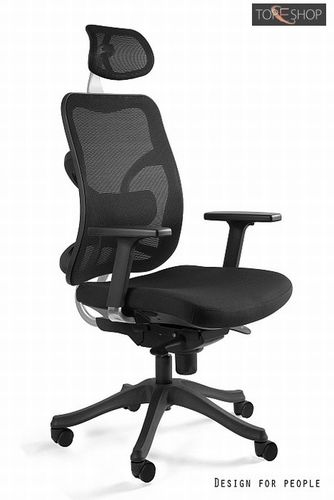 - Oparcie oraz zagłówek wykonane z wysokiej jakości siatki materiałowej przepuszczającej powietrze- Siedzisko pokryte przyjemną w dotyku, w pełni przewiewną i odporną na ścieranie tkaniną materiałową.- Regulacja głębokości i wysokości siedziska. - Mechanizm odchylania SYNCHRON - pozwala na zatrzymanie oparcie w jednejz czterech pozycji lub swobodne bujanie się.- Regulowane podłokietniki (góra-dół, przód-tył, wychylenie na boki) - Podłokietniki wykonane z miękkiego i przyjemnego w dotyku tworzywa.- Regulowane oparcie dla kręgów lędźwiowych- Regulacja wysokości i kąta pochylania zagłówka- Gwiazda jezdna wykonana z mocnego tworzywa (nylon), spełniająca standardy BIFMA.- 2 lata gwarancji- Maksymalne obciążenie 130 kg- Waga 22 kgWysyłka w ciągu 5 dni od zamówienia.