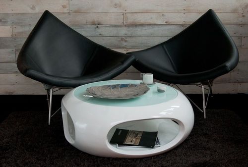 Coconut Chair to fotel zaprojektowany przez George`a Nelsona w roku 1956. Mebel miał przypominać wycinek kokosa podzielonego na osiem części. Pomimo swej prostej formy jest bardzo wygodny a jego elegancka forma sprawie, że może być wykorzystany w różnych wnętrzach.,Produkt wykonany jest z wysokiej jakości włókna szklanego lakierowanego na,biały kolor. Podstawę stanowią chromowane rurki. Skorupa fotela wyłożona jest skórą.,Prezentowany produkt jest inspirowany projektem fotela Coconut chair., Wysokość: 92