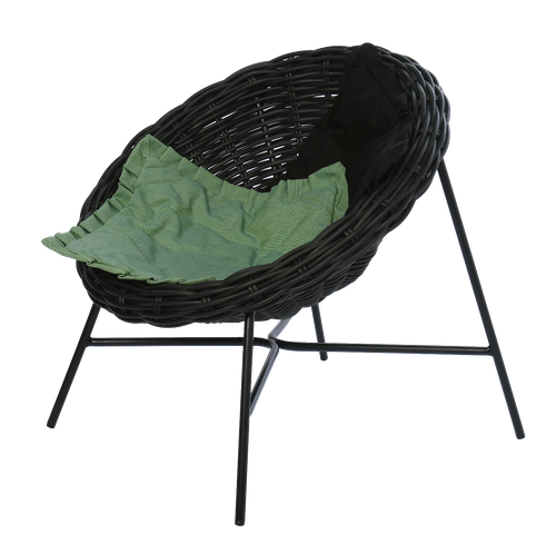 Czarny fotel ogrodowy Eve z dwiema poduszkami. Fotel Evy to czarna, aluminiowa konstrukcja na stabilnych czterech nóżkach i głębokie, bardzo wygodne ekorattanowe (technorattanowe) siedzisko. Kształt fotela i jego ergonomia sprawiają, że jest świetnym wyborem na leniwe, letnie dni. Dodatkowy komfort zapewniają dwie poduszki w kolorze czarnym i zielonym wykonane z materiału sunproof, który idealnie znosi zewnętrzne warunki atmosferyczne. Zastosowanie ekorattanu, aluminium i materiału sunprood sprawia, że fotel jest wytrzymały i odporny na działanie deszczu i słońca. Fotel Eve to idealne rozwiązanie dla osób ceniacych relaks na łonie natury.