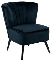 Fotel w stylu Glamour, tapicerowany welurową tkaniną VIC w kolorze navy blue. Fotel ma piękne opływowe kształty, które sprawiają, że będzie on stylowym elementem w mieszkaniu. Fotel wykonany został z drewna kauczukowego, malowanego na kolor czarny oraz stelaż na którym znajduje się wysoko elastyczna gąbka, tapicerowana tkaniną. Fotel wymaga montażu, jego maksymalne obciążenie wynosi 120kg. Fotel Lark doskonale sprawdzi się zarówno w domowej przestrzeni jak i komercyjnej, biurowej czy hotelowej. Max. ilość sztuk w kartonie: 1 Wymiary kartonu: 67cm x 57cm x 71cm Wysokość: 80