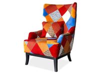 Queen A to nowoczesny design oraz ciekawa forma tworząca wspaniałe zestawienie nawet dla najbardziej wymagających klientów, oraz nadaje wnętrzu bardzo ciekawy wygląd. Połączenie tapicerowanego siedziska i oparcia składającego się z różnorodnych kawałków materiałów to idealne połączenie wzornictwa z użytecznością. Wytworności dodają fotelowi drewniane nogi. Fotel jest idealny do wypoczywania, wysoki zagłówek oraz idealnie wyprofilowane oparcie zapewniają maksymalny komfort. DANE TECHNICZNE: WYMIARY: Szerokość - 73 cm Głębokość - 60 cm Wysokość - 107 cmWysokość siedziska od podłoża - 47 cm MATERIAŁ: Stelaż: drewno kolor - czarnySiedzisko i oparcie: tkanina kolor - patchwork