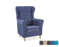 RALPH to nieszablonowy, wygodny fotel do salonu. Podstawa fotela wykonana jest z naturalnego, bardzo trwałego drewna bukowego, zapewniającego stabilność całej konstrukcji. Obicie stanowi przyjemna w dotyku kanina, dostępna w kilku wybarwieniach umożliwiających zarówno ożywienie wnętrza, jak i jego stonowanie. Fotel RALPH posiada białe guziki na oparciu i lamówki na poduszce oraz podłokietnikach dodając mu niesamowitego wyglądu. Mebel swoją prostą, wręcz klasyczną formą będzie ozdobą mieszkań stylizowanych na styl minimalistyczny oraz loftowy. Miękkie siedzisko i oparcie fotela pozwoli na wygodne ułożenie się i odprężenie po całym dniu pracy. Ustawiony w salonie sprawi, że nawet oglądanie telewizji stanie się przyjemnością, przez wygodę, którą zapewnia fotel RALPH. DANE TECHNICZNE: WYMIARY: Szerokość - 80 cm Głębokość - 49 cm Wysokość - 110 cmWysokość siedziska od podłoża - 48 cm MATERIAŁ: Stelaż: drewno kolor - bukSiedzisko i oparcie: tkanina (HC 80/ETNA 80) kolor - granatowy