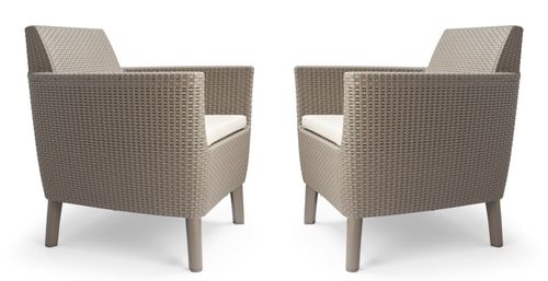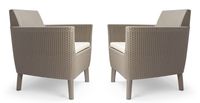 Salemo to kompletna nowość na rynku, zestaw z imitacji rattanu, który wyróżnia się nowoczesnym i retro stylem życia. Dwa wygodne fotele z miękkimi poduszkami i świetnym designem są idealne do małych przestrzeni lub jako uzupełnienie każdego zestawu Salemo. Lekka i stabilna konstrukcja mebla idealnie nadaje się zarówno na zewnątrz, jak i do wnętrza. Produkt jest wysoce odporny na promienie UV i warunki atmosferyczne. Dużą zaletą jest również prosta konserwacja, łatwy montaż i obsługa.
