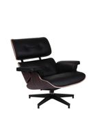 Fotel składa się z trzech sklejkowych muszelek połączonych ze sobą metalowymi elementami. Siedzisko i oparcie tapicerowane są miękką, skórą naturalną. Obrotowa baza wykonana z aluminium występuje w dwóch wersjach. Pierwsza ma boki i spód nóg lakierowane na czarno a wierzch polerowany (ta wersja najczęściej jest spotykana z ciemną skórą) . Druga wersja bazy jest w całości polerowana i występuje najczęściej z białą skórą. Podnóżek dostępny jest oddzielnie w ofercie naszego sklepu.