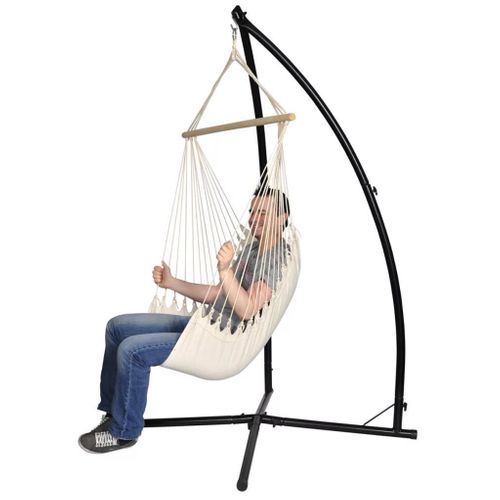 Klasyczny fotel hamakowy świetnie sprawdza się podczas wypoczynku w ogrodzie, na tarasie, na balkonie, jak i również w salonie. Stabilna i wytrzymała podstawa gwarantuje wysoki komfort oraz dużą stabilność. Z prezentowanego fotela hamakowego mogą korzystać osoby, których waga nie przekracza 130 kg.