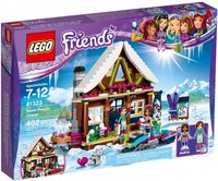 Domek w zimowym kurorcie z serii LEGO Friends ma jacuzzi na zewnątrz, kuchnię oraz salon z kominkiem na drewno. Na piętrze jest sypialnia z trzema łóżkami, toaletką i posłaniem dla psa. W zestawie jest też świetny skuter śnieżny i uroczy szczeniaczek husky. Zestaw zawiera dwie minilaleczki.