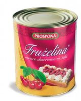 Frużelina to wiśnie zanurzone w delikatnym żelu, bez użycia żelatyny. Owocowy dodatek do letnich deserów (gofrów, lodów, naleśników, omletów) i do wypieków (ciastek, ciast i tortów). Do bezpośredniego spożycia jak i do zapiekania. Produkt polski. Waga produktu: 380 g
