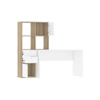 Wymarzony mebel do biura lub do mieszkania! Funkcjonalne meble świetnie sprawdzają się w wielu pomieszczeniach. Przykładem może być prezentowany zestaw, który z powodzeniem może być wykorzystywany zarówno w mieszkaniu, jak i w przestrzeni biurowej. FUNCTION PLUS biurko z regałem to komplet, który został zaprojektowany pod kątem potrzeb potencjalnego konsumenta. Poszczególne elementy powstały na bazie wytrzymałej płyty meblowej, która dodatkowo wpływa na ich estetykę. Całość jest utrzymana na bazie zestawienia koloru białego z charakterystycznym odcieniem dębu sonoma. To jedna z nowocześniejszych propozycji dostępnych na rynku, w której mamy do czynienia z połączeniem biurka z regałem. Postaw na funkcjonalność w nowatorskiej odsłonie!