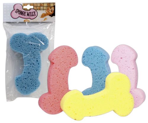 Gabka do kapieli w ksztalcie penisa. Dostepne w czterech kolorach. Kolory nieposortowane.