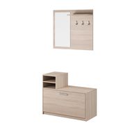 Garderoba w dwóch częściach. Posiada uchylną szafkę na buty, półki, lustro i wieszaki.