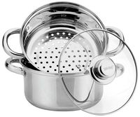 Komplet garnków do gotowania na parze wykonany jest z wysokiej jakości stali nierdzewnej. Wykorzystana stal składa się z najlepszej jakości stopu powszechnie stosowanego w światowej klasy produktach, co gwarantuje jej wysoką odporność na korozję oraz bardzo dobrą wytrzymałość. Zastosowany materiał umożliwia szybkie podgrzanie potraw i przez dłuzszy czas utrzymuje ciepło. Produkt przystosowany do gotowania na kuchenkach indukcyjnych, gazowych, elektrycznych, ceramicznych i halogenowych. Można go bezpiecznie myć w zmywarkach.