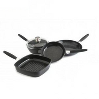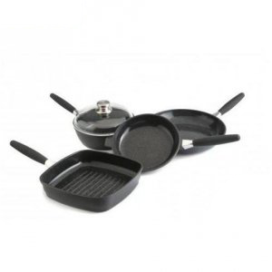 Funkcjonalny i elegancki zestaw patelnie i rondli.