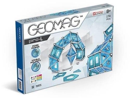 Zestaw magnetyczny Geomag! Dzięki pałeczkom magnetycznym i kulkom stalowym można zbudować niemal nieograniczoną liczbę prostych kształtów, geometrycznych figur lub złożonych struktur architektonicznych. Zestaw Geomag Pro-L z jeszcze większymi magnesami pozwala zbudować bardziej fantastyczne kształty. Pałeczki i jasnoniebieskie wypełnienia pokażą Twojemu dziecku nowy sposób zabawy.