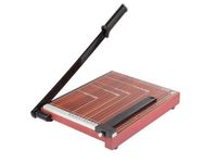 Drewniana, ręczna gilotyna do papieru. Pozwala w łatwy i szybki sposób przyciąć papier do odpowiednich rozmiarów